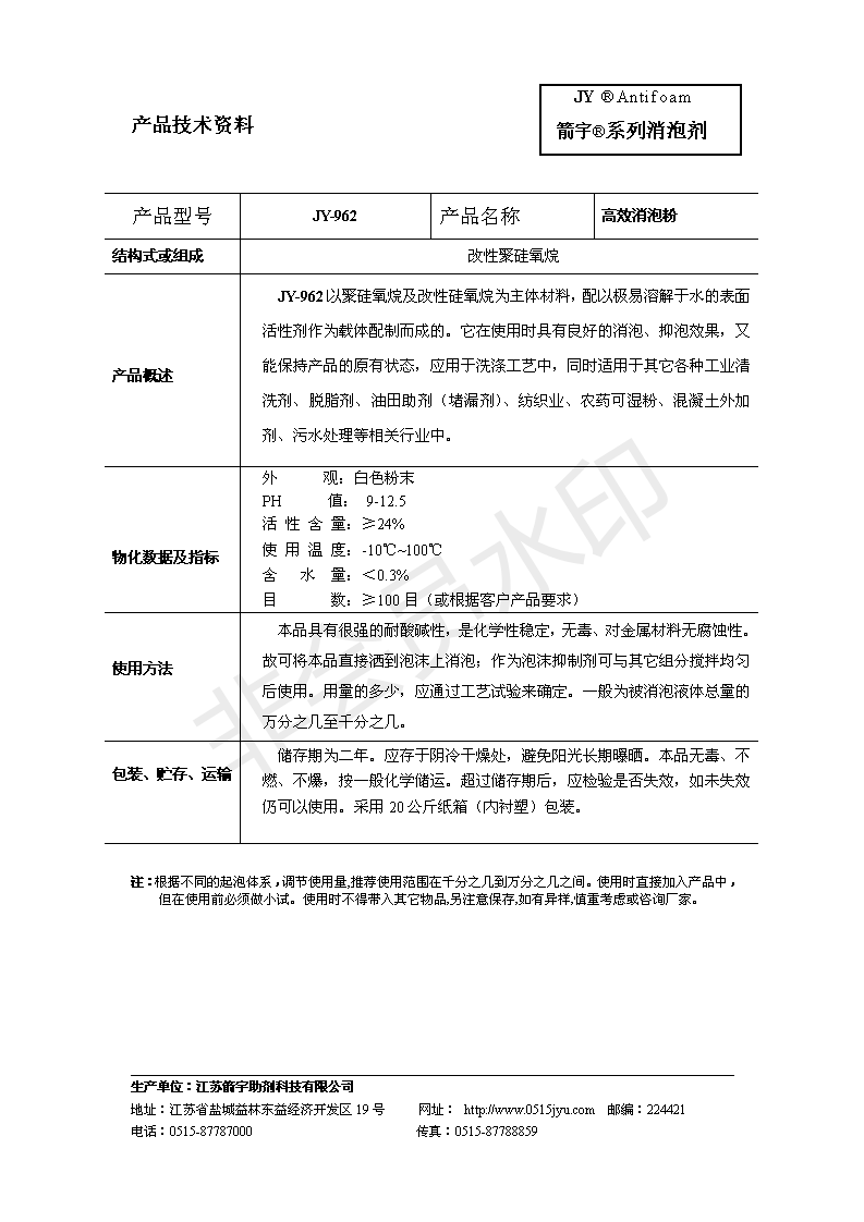 有机硅粉末消泡剂JY-962