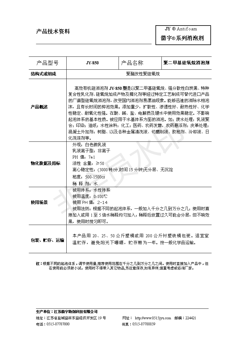 水性有机硅消泡剂JY-850