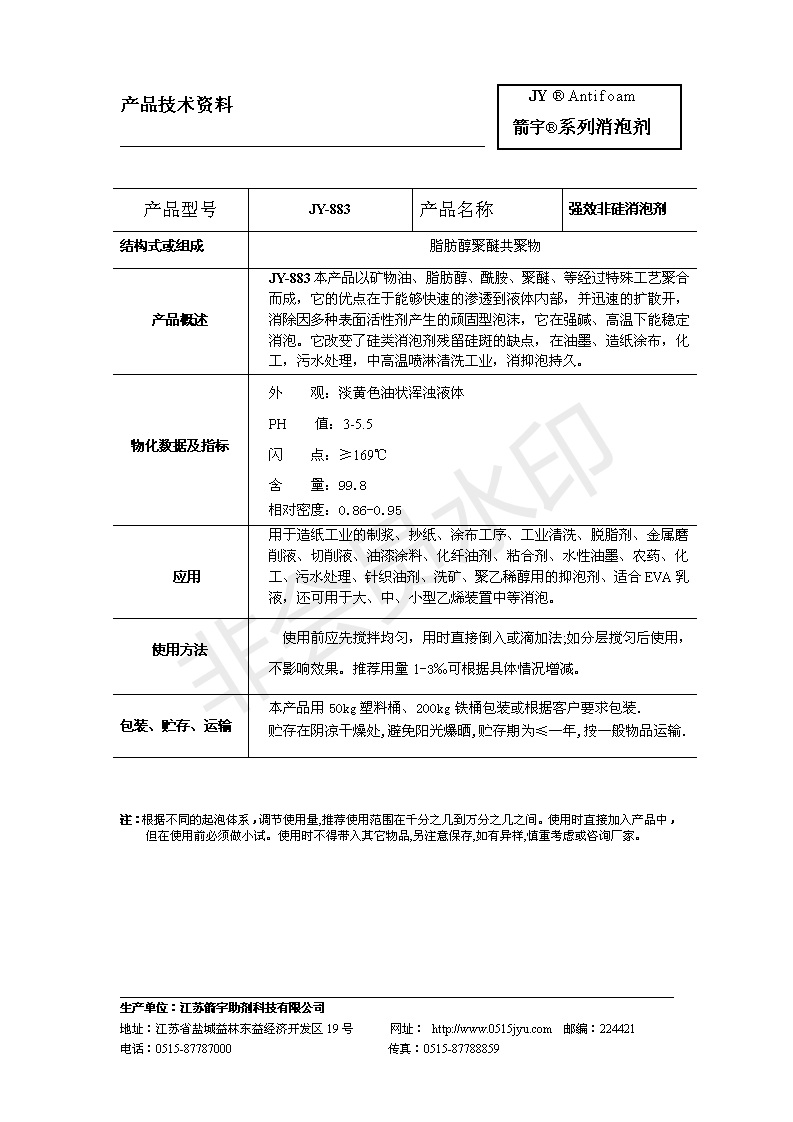 JY-883非硅消泡剂